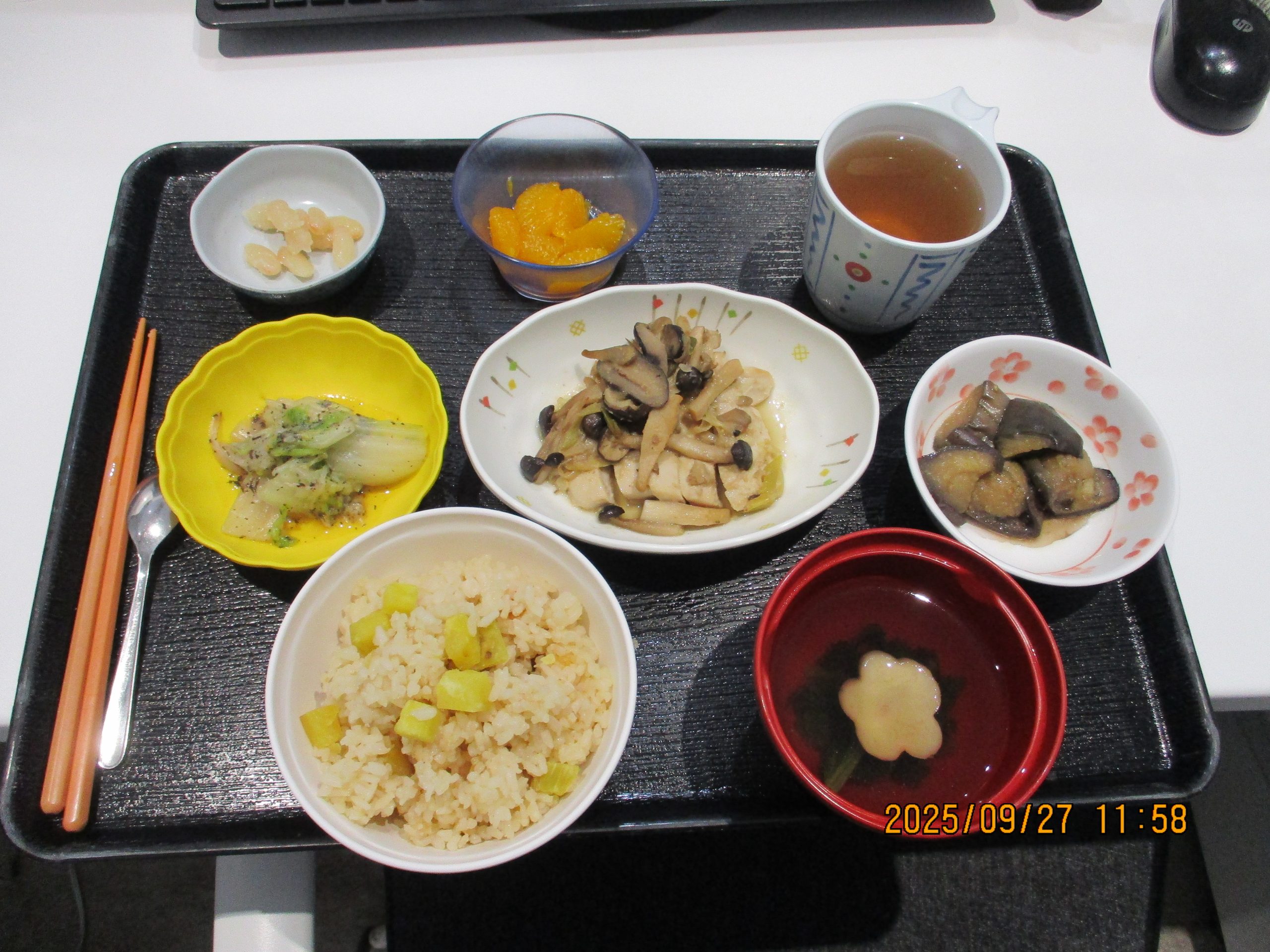 年に一度のクリスマスに美味しいご飯を厨房スタッフが心を込めて作りました。ピラフにエビフライ、グラタン等どれも美味しかったです。「豪華だね」、「今日はクリスマスなのか」等会話がはずんでいました。
